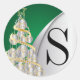 Sticker Rond Monogram Argent, Or et Vert Joyeux Noël
