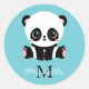 Sticker Rond Monogram Cute Panda Personnalisé Bubble Gum Bleu