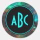 Sticker Rond Monogramme à trois lettres - Noir et Aqua personna