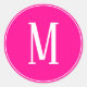 Un autocollant rond classique avec un monogramme blanc sur un arrière - plan rose chaud. Customisez l'autocollant avec vos initiales ou initiales, couleur arrière - plan, entre autres options.