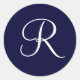 Sticker Rond Monogramme bleu et blanc de la marine R initiale