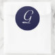 Sticker Rond Monogramme bleu et blanc de la marine Sceau initia