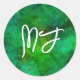 Sticker Rond Monogramme Bokeh noir et vert