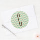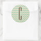 Sticker Rond Monogramme Brown sur Motif Turquoise Green Chevron