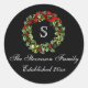 Sticker Rond Monogramme classique Holly Wreath Custom Christmas