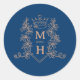 Sticker Rond Monogramme couronne crête bleu et or rose mariage