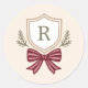 Sticker Rond Monogramme Crest Red Bow Enveloppe de Noël