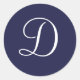 Sticker Rond Monogramme D, blanc sur bleu marine,