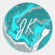 Sticker Rond Monogramme d'art fluvial en marbre bleu, Turquoise