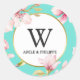 Sticker Rond Monogramme de fleurs de cerisier d'aquarelle