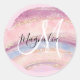 Brosse rose, rose, violet et bleu brosse à gemstone brosse et fillette et glam autocollant rond classique initial. Votre nom personnalisé et votre monogramme sont écrits dans un élégant script en lettres blanches et noires. Vous pouvez modifier la couleur du texte, le style et la taille de police à l'aide de l'option personnaliser.