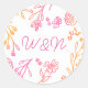 Sticker Rond Monogramme de script floral simple rose orange