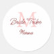 Sticker Rond Monogramme de tribu de mariée simple rouge mini en