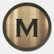 Un autocollant design et moderne avec médaillon en monogramme d'or métallique brossé en typographie classique avec bordure en dégradé dans les tons marron noir. Vous pouvez customiser en utilisant les champs fournis. Idéal pour l'envoi, l'étiquetage ou la décoration.