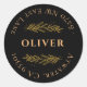 Black Gold Branche Dessin Monogramme Retourner Adresse Sticker Rond Classique.