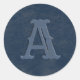 Cet autocollant rond rustique personnalisé présente un arrière - plan de texture en cuir faux bleu avec une initiale monogrammée pour vous permettre de personnaliser. Conçu par un artiste de renommée mondiale ©Tim Coffey.