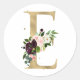 Sticker Rond Monogramme en lettre dorée fleurs boho bordeaux Cl