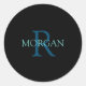 Sticker Rond Monogramme et nom, bleu et Turquoise