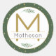 Sticker Rond Monogramme et nom des vacances vertes et dorées mo