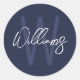 Sticker Rond Monogramme et nom personnalisés de Navy Blue Scrip