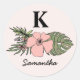 Sticker Rond Monogramme Feuille tendance rose et vert