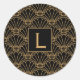 Monogramme noir et or art déco fleurs motif autocollants de fleurs de ventilateur. Le design comporte un motif de fleurs en noir et or extensible et votre initiale personnalisée. Motif style Gatsby des années 1920.