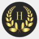 Gold Laurel feuilles de laurier de couleur dorée sur noir solide. Utilisez le modèle pour personnaliser avec votre initial.