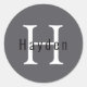 Sticker Rond Monogramme gris Masculin simple Nom + Initiale
