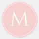 Monogramme initial élégant pastel rose autocollant rond classique. La couleur du texte et du fond sont personnalisables.