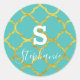 Sticker Rond Monogramme Initial Nom Bleu Sarcelle Or Feuille 20