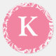Sticker Rond Monogramme K rose blanc Mariage Thème Monogrammes