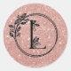 Élégant Sticker rond Floral Monogram L Classic avec une Parties scintillant rose Rose dorée moderne Luxe en toile de fond. Si vous ne trouvez pas votre contact initial, contactez le concepteur à l'adresse gabrielarupp@gmail.com