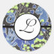 Sticker Rond Monogramme Mariage Bleu Bleu Bordures