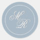Sticker Rond Monogramme Mariage bleu Dusty personnalisé
