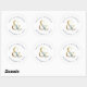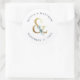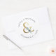 Autocollants ronds imprimés sur mesure, parfaits pour les étiquettes de mariage, merci cadeaux ou enveloppes mariages monogrammées. Cet élégant design moderne présente un esperon en feuille d'or imitant les fleurs délicates et la verdure. Personnalisez-le avec le nom de la mariée et du marié et la date du mariage dans toutes les polices et couleurs que vous voulez. Utilisez les outils de conception pour éditer le texte ou ajouter vos propres photos pour créer un autocollant mariage de type !