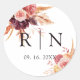 Sticker Rond Monogramme Mariage floral de Terracotta Bourgogne