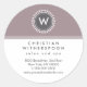 Un design contemporain propre qui peut fonctionner pour plusieurs types d'entreprises, y compris un salon, massothérapeute, nutritionniste, expert en bien-être, magasin de détail ou grossiste. Votre monogramme est assis sur un ornement moderne contre le mauve. Grand autocollant promotionnel à utiliser comme enveloppe ou scellés d'emballage, ou à utiliser sur les achats ou factures des clients. Disponible en couleurs alternatives avec des produits correspondants.