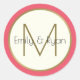 Autocollant monogramme rond simple et audacieux avec centre ivoire, texte géométrique moderne et accents or. La couleur peut être changée facilement en changeant la couleur arrière - plan.