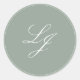 Sticker Rond Monogramme moderne Simple Script Sage Mariage vert
