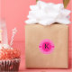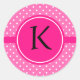 Sticker Rond Monogramme Motif à points rose chaud et blanc