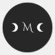 Sticker Rond Monogramme noir et blanc moderne des lunes de croi