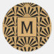 Sticker Rond Monogramme Or et noir Art déco Fleurs de ventilate