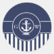 Sticker Rond Monogramme personnalisé Ancre et ligne nautiques t