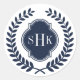 Elégante crête de couronne de laurier bleu et blanc avec monogramme personnalisable. Design simple et élégant.