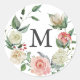 Sticker Rond Monogramme Rose aquarelle