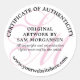 Élégant certificat rond d'autocollants d'authenticité avec texte noir et votre monogramme en rose clair. Certificat personnalisé d'autocollants d'authenticité avec votre nom, monogramme, et site Web. Élégant certificat monogrammé d'autocollants d'authenticité pour elle avec les initiales de l'artiste en rose clair sous le texte.