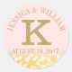 Étiquette de conception légère rose et or avec texte courbe et monogramme.