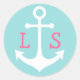 Sticker Rond monogramme rose sur ancre blanche sur bleu pastel