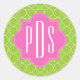 Sticker Rond Monogramme rose + vert Quatrefoil