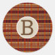 Sticker Rond Monogramme rustique Kraft Brown & Orange Plaid